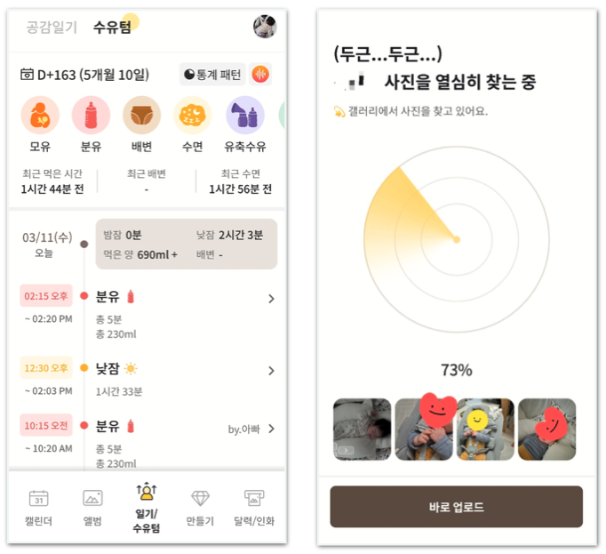 1. 공동 육아의 필수템: 쑥쑥찰칵 (수유·취침 기록 및 사진 공유)