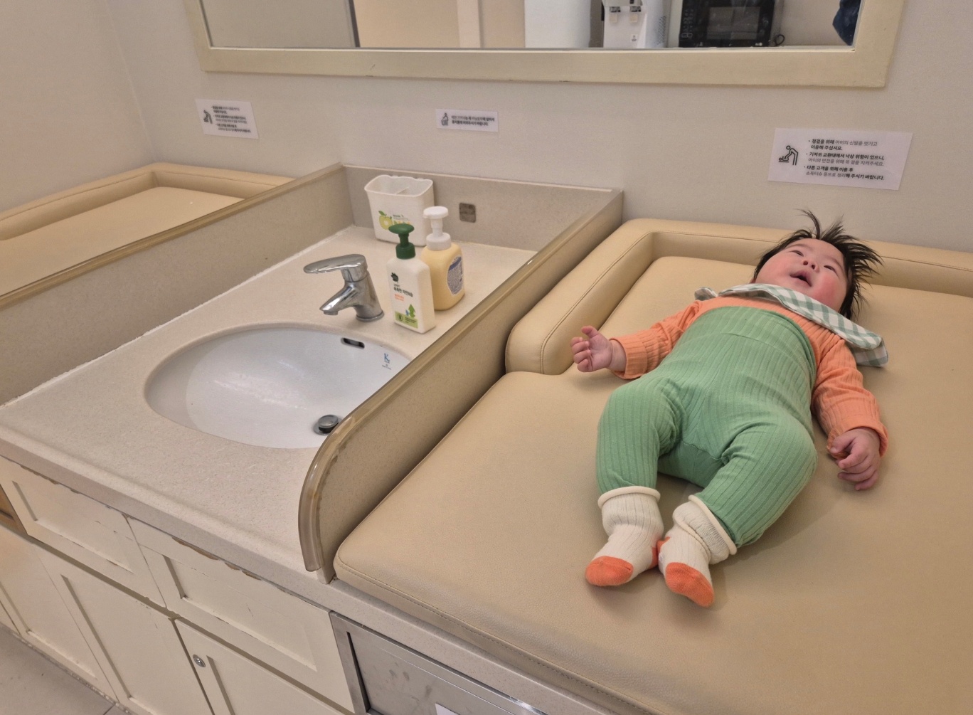 기저귀 갈이대에 사이에 세면대도 있고 좋다.