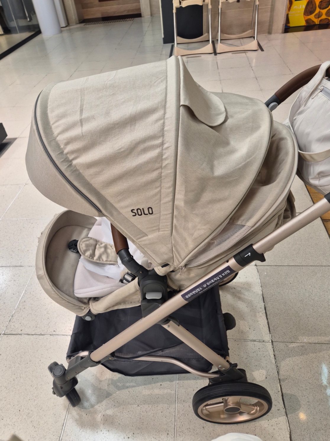 등받이도 더 낮춰줄 수 있어서 아기가 잘 잔다.
